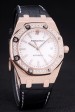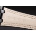 Bracelet: Heat embossed Audemars Piguet black crocodile leather strap with double red stitching and Audemars Piguet engraved ion-plated fold-in clasp