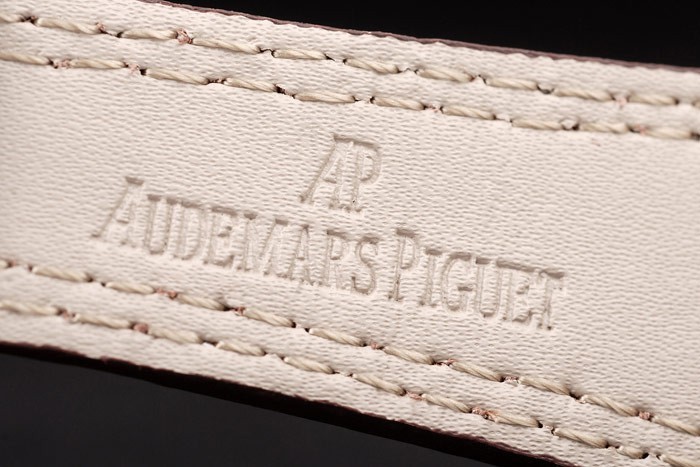 Bracelet: Heat embossed Audemars Piguet brown crocodile leather strap with double white stitching and Audemars Piguet engraved rose-gold plated fold-in clasp