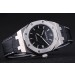 Bracelet: Black crocodile leather strap with white thread stitching and heat embossed Audemars Piguet name and logo and an Audemars Piguet inscribed stainless steel flip-over hook clasp