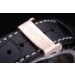 Bracelet: Black crocodile leather strap with white thread stitching and heat embossed Audemars Piguet name and logo and an Audemars Piguet inscribed rose-gold plated flip-over hook clasp