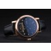 Bracelet: Breguet heat embossed black crocodile leather strap with Brequet engraved 18k rose-gold plated fold-in hook-buckle clasp