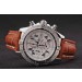 Bracelet: Warm russet-red high-grade leather in a crocodile pattern, with heavy white cotton stitching. Tan inner band is embossed with the Breitling name and logo, and has a steel buckle closure.