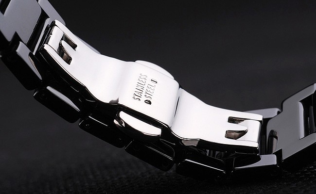 Bezel: 440 stainless steel, engraved, coated in black plastic.