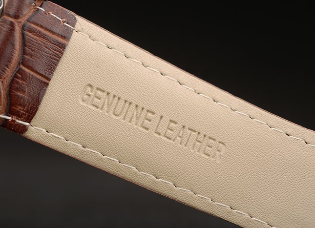Bracelet: Cartier heat embossed brown crocodile leather strap with rose-gold plated buckle clasp