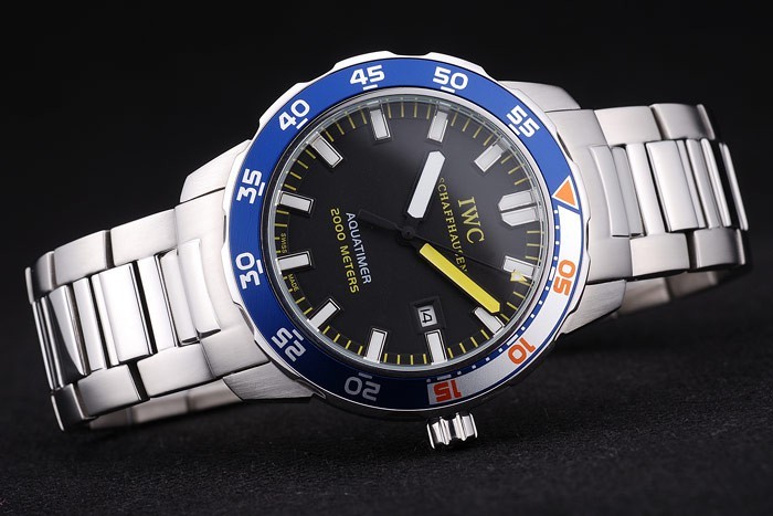 Back: Brushed stainless steel screwed down back with IWC inscription
