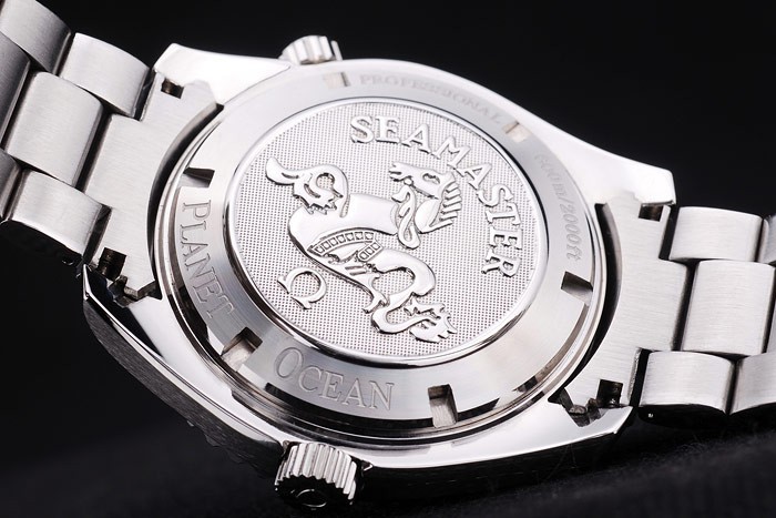 Back: Stainless steel snap-in back with Seamaster logo and engravings