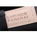 Bracelet: Black leather strap with heat embossed Luminor Panerai stamp and ion-plated stainless steel hook-buckle clasp with Panerai engraving
