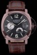 Bracelet: Black leather strap with white stitching and heat embossed Luminor Panerai stamp and ion-plated stainless steel hook-buckle clasp with Panerai engraving