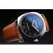 Bracelet: Brown crocodile leather strap with white stitching and heat embossed Officine Panerai Italy stamp and polished stainless steel hook-buckle clasp with Panerai engraving