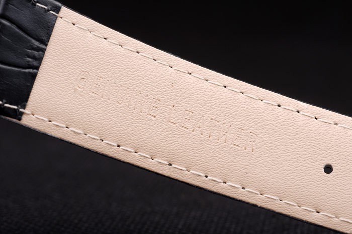 Bracelet: Black crocodile leather strap with heat embossed Patek Philippe stamp and polished stainless steel hook-buckle clasp with Patek Philippe engraving