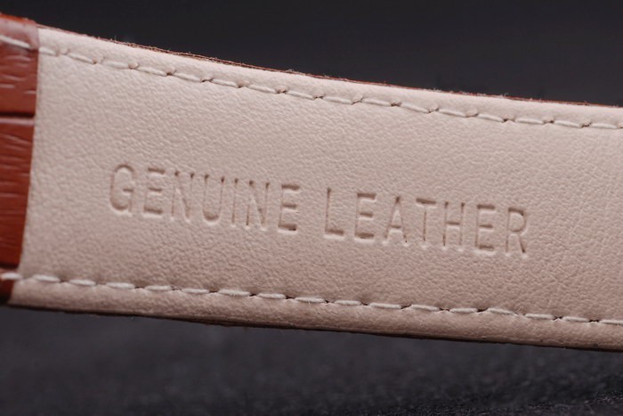 Bracelet: Brown leather strap with Patek Philippe stamp and a rose gold fold in clasp
