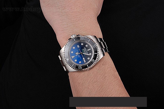 Bezel: Black ceramic minute marker polished stainless steel cutwork bezel