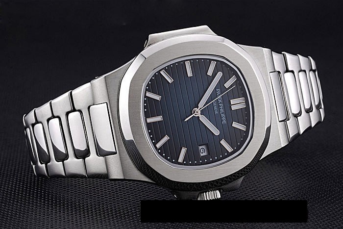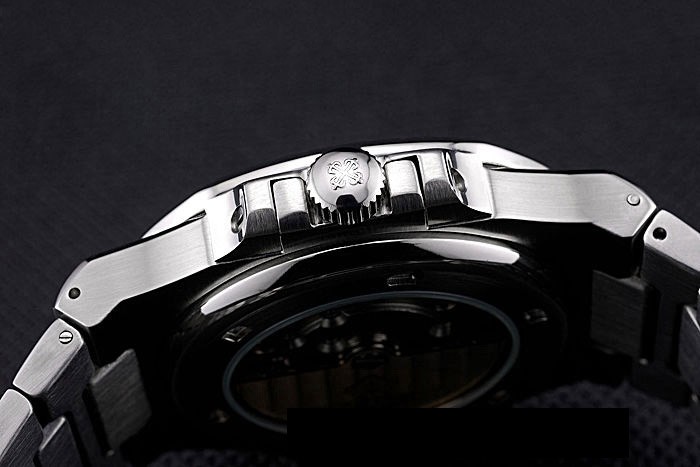 Crown: Patek Philippe logo engraved polished stainless steel cutwork crown with protective wall