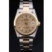 Bracelet: Two toned link bracelet in brushed stainless steel and 18k yellow gold plated steel with Rolex engraving fold-in deployment clasp displaying the Rolex logo