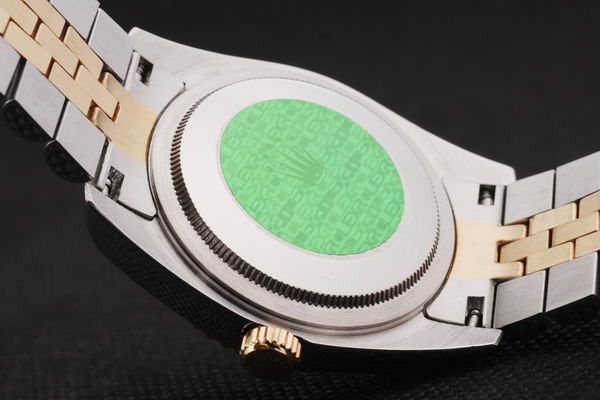 Back: Push in stainless steel back with green Rolex sticker and markings