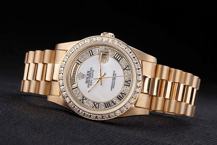 Crown: 18k yellow gold plated steel cutwork crown with Rolex logo