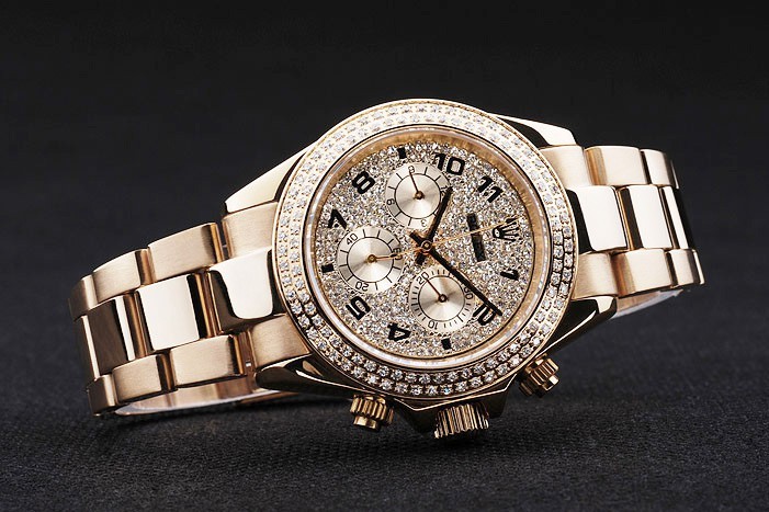 Crown: Gold toned cutwork crown with Rolex logo and two additional crowns on either side of it
