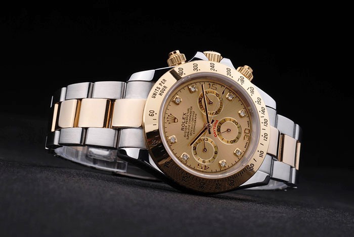 Crown: Gold toned cutwork crown with Rolex logo and two additional crowns on either side of it