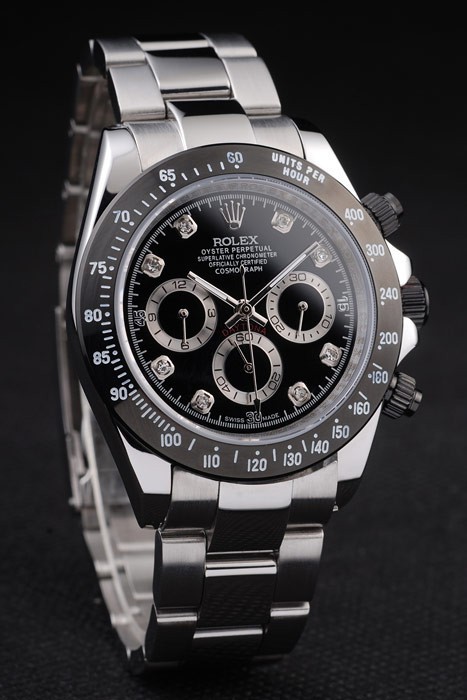 Bracelet: Brushed and polished stainless steel link bracelet with Rolex engraved deployment clasp displaying the Rolex logo