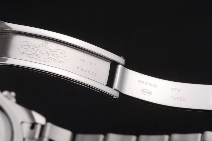 Back: Push in stainless steel back with green Rolex sticker and markings