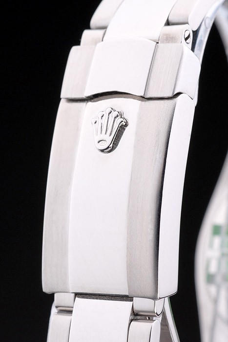 Back: Stainless steel push-in case back with green Rolex engraving stamp
