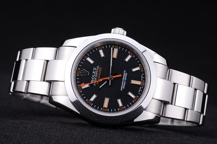 Back: Stainless steel snap-in back with green Rolex logo authenticity stamp