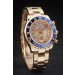 Bezel: Rose gold plated unidirectional cutwork bezel with 1 to 10 markings and Yacht Master engraving on a blue enameled background