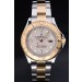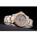 Bracelet: Two toned brushed and gold tone stainless steel link bracelet with Rolex engraving fold-in clasp displaying the Rolex logo