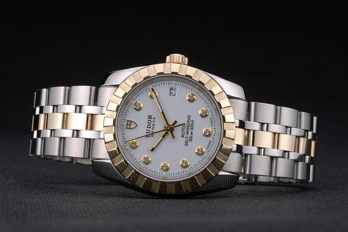 Swiss Tudor Classic Rose Gold Ribber Bezel Crystal Encrusted White Dial 80301