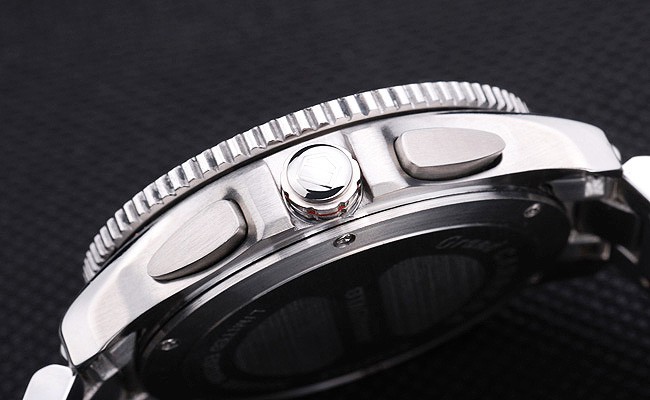 Bezel: Polished stainless steel cutwork bezel with glossy black tachymeter